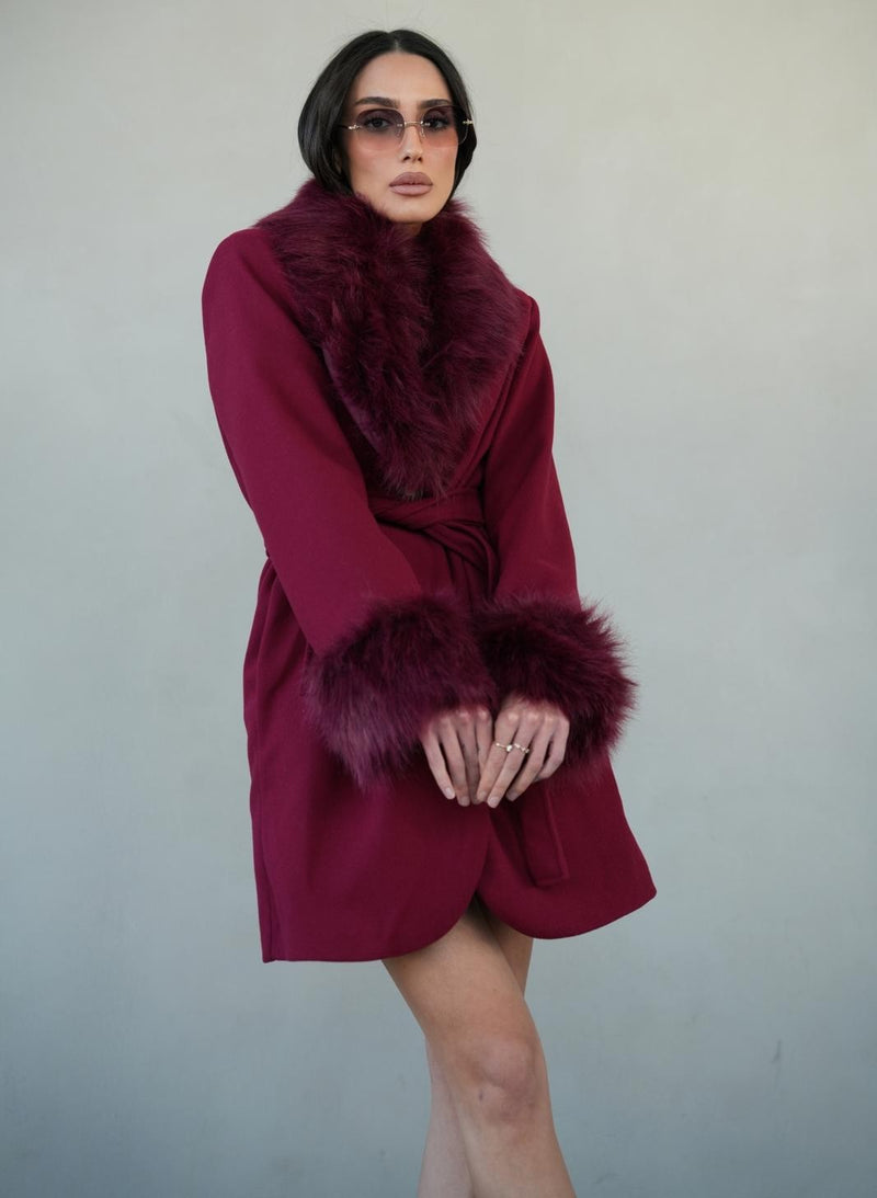 ג׳קט Peri בעיצוב ערב יוקרתי עם פרווה רכה בצווארון ובשרוולים.