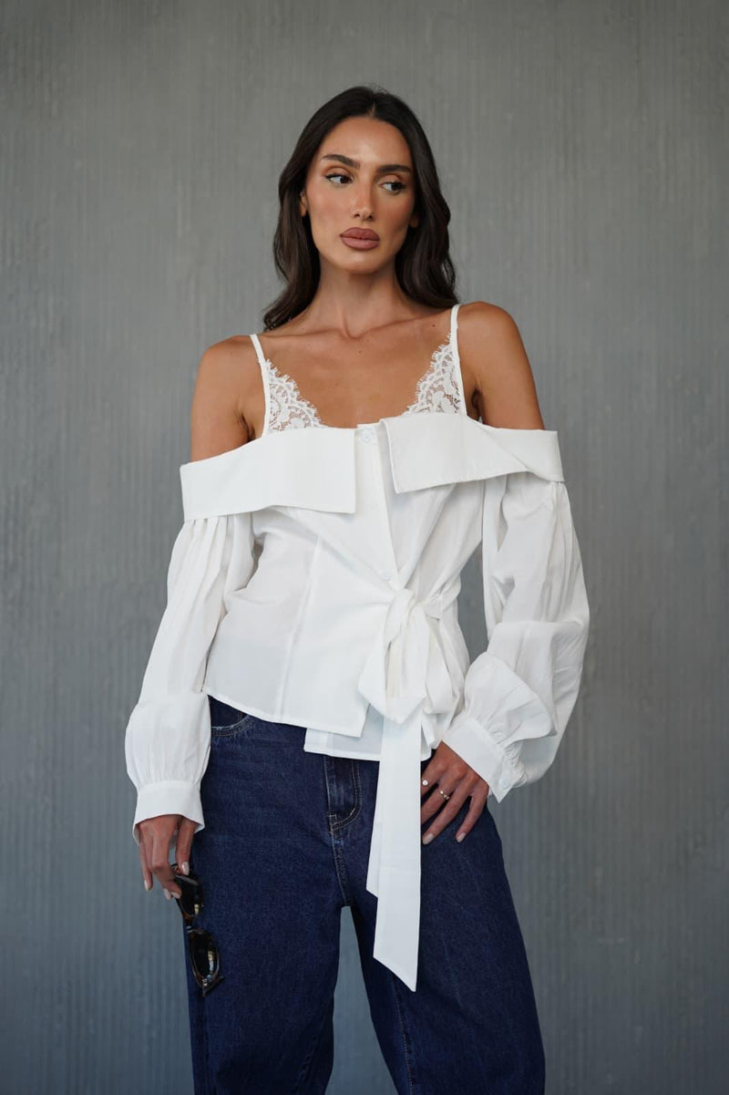 חולצת Brendo היא חולצה אלגנטית עם כתפיים חשופות וטופ תחרה עדין.