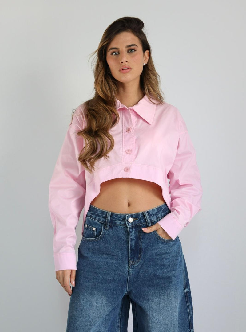 חולצה מכופתרת בגזרת קרופ עם שרוולים ארוכים וקו נקי. משלבת סטייל מחויט עם טוויסט מודרני.
